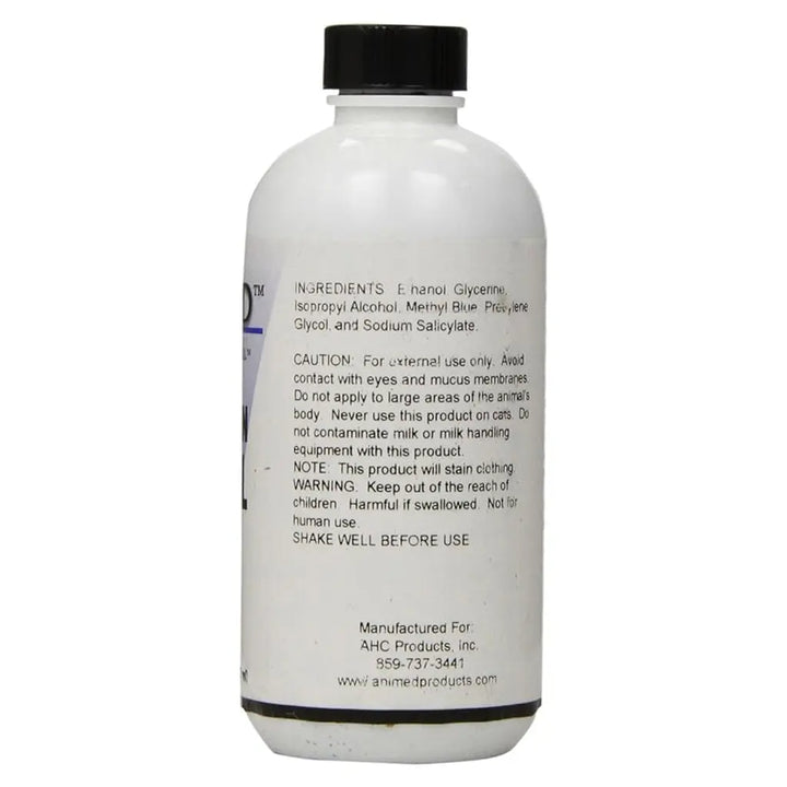 Blue Lotion Topical Antiseptic Spray is a wound dressing and antiseptic for use on cattle, dairy cattle, dogs, horses, sheep and goats. It is a fast-drying antiseptic wound dressing and gall lotion to aid in the prevention of superficial infections.
