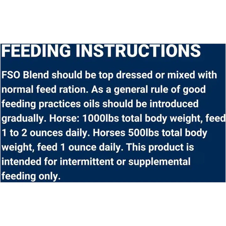 - FSO Blend should be top dressed or mixed with normal feed ration. As a general rule of good feeding practices oils should be introduced gradually.