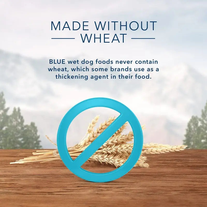- WHOLESOME INGREDIENTS: BLUE wet dog food contains NO chicken (or poultry) by-product meals, NO corn, wheat (a common thickening agent used by many other brands) or soy, and NO artificial flavors or preservatives