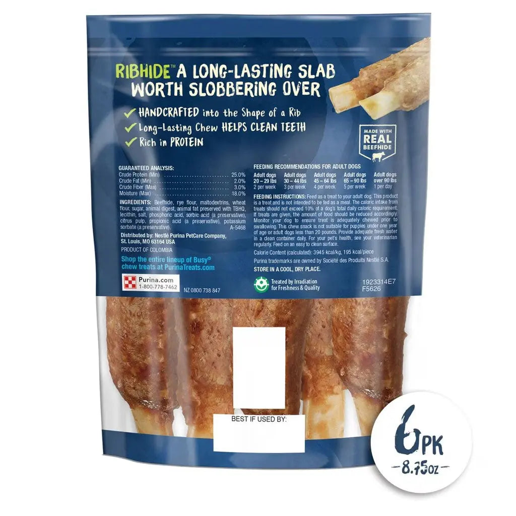 Busy Rib Hide Long-Lasting Beef Hide Chew Small/Medium Dog Treat, 6 count