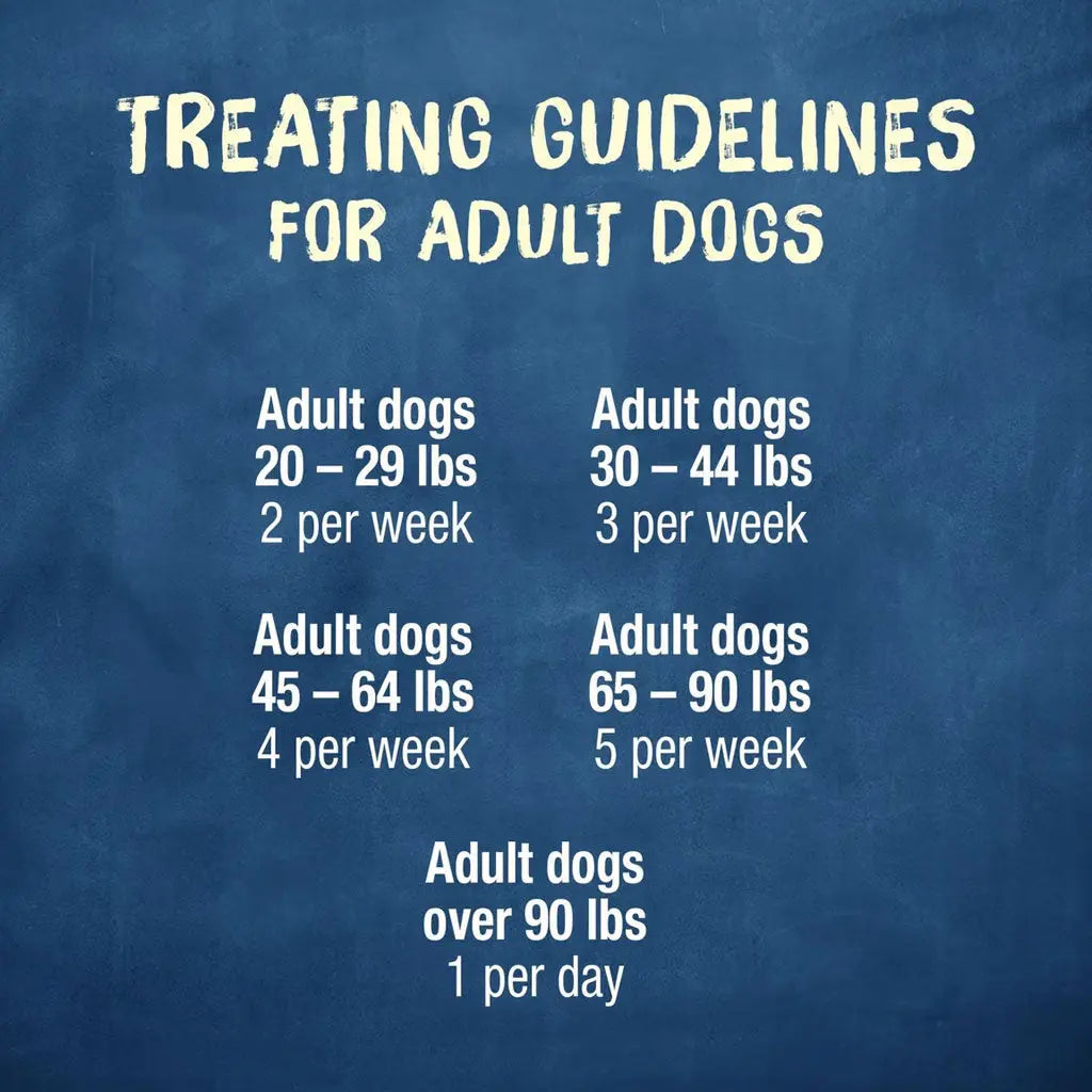 Feed as a treat to your adult dog. This product is a treat and is not intended to be fed as a meal. The caloric intake from treats should not exceed 10% of a dog's total daily caloric requirement. If treats are given, the amount of food should be reduced accordingly. Monitor your dog to ensure the treat is adequately chewed before swallowing. This chew snack is not suitable for puppies under one year of age or adult dogs less than 20 pounds. Provide adequate fresh water in a clean container daily. For your pet's health, see your veterinarian regularly. Feed on an easy-to-clean surface.