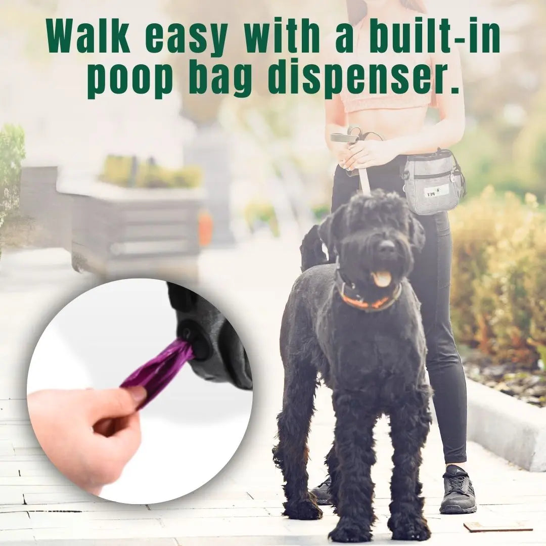 An essential feature of this dog treat pouch is the inclusion of three rolls of poop bags. These biodegradable bags are not only environmentally friendly, but they're also easy to dispense. Just pull a bag from the pouch, and you’re ready to clean up after your pet. This convenience means you can focus more on enjoying your time with your dog rather than worrying about maintaining cleanliness. This pouch not only meets your practical needs, but it elevates your overall dog-walking experience.