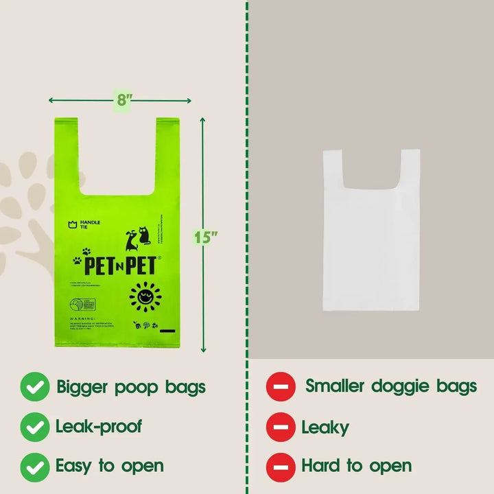 - TIE-HANDLE DESIGN: 5" handles for quick, secure tying and mess-free disposal