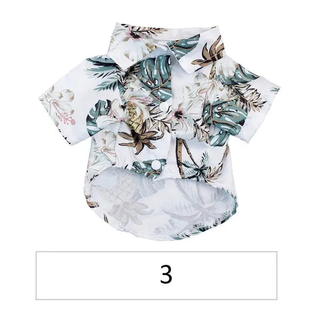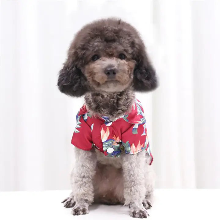 - ăBreathable Fabrică The pet Hawaiian beach shirt is crafted of soft and lightweight cotton material, which keeps your dog comfortable and protects your pet from hot sunshine.
