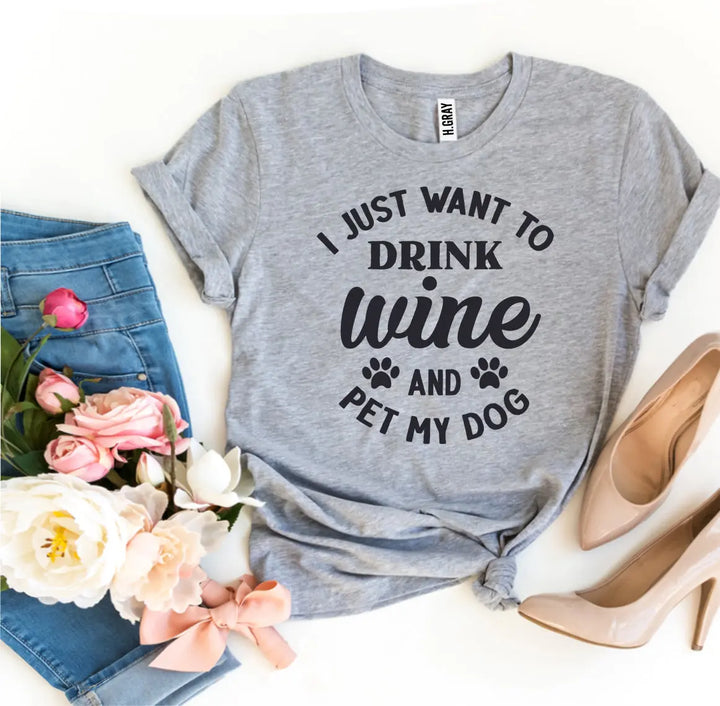 I Just Want To Drink Wine And Pet My Dog T-Shirt