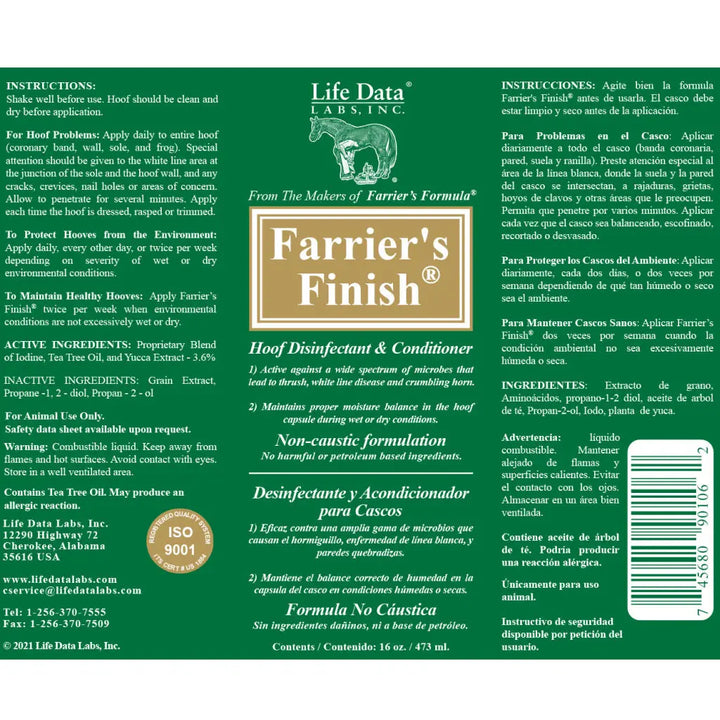 Life Data Farrier's Finish Hoof Disinfectant & Conditioner For Horses (16 oz)