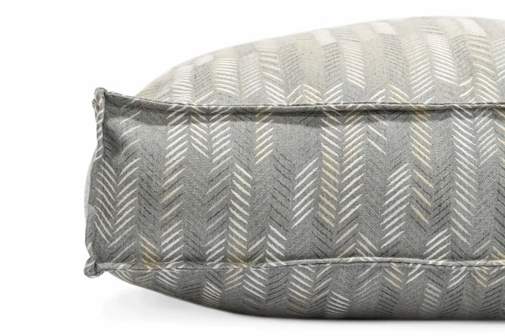 Tailored in beautiful gray Sunbrella fabric with a playful hand-drawn chevron pattern, this bed is soft to the touch, durable, resists moisture, and is washable. There is simply no better fabric choice for a pet bed. Each piece is made by hand in the USA and begins manufacturing the day you place your order.
