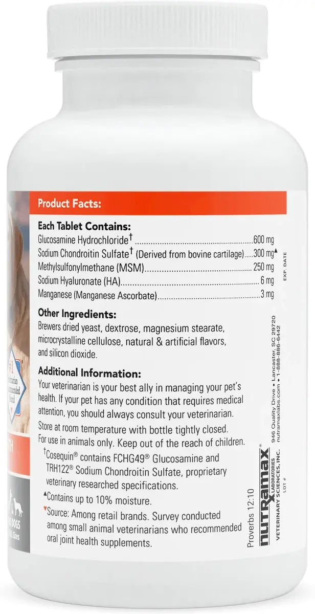 - Joint Health Support for Dogs: Cosequin, the #1 veterinarian recommended retail joint health supplement brand▼, contains glucosamine hydrochloride, sodium chondroitin sulfate, and methylsulfonylmethane (MSM) that helps support healthy cartilage.
