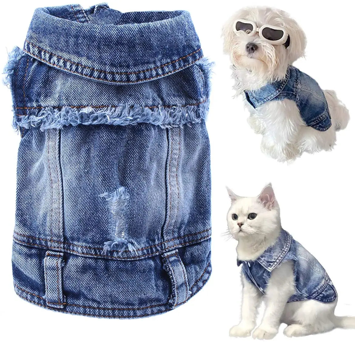 Pet Dog Cat Blue Denim Jeans Jacket Coat Vest