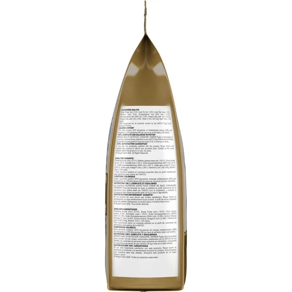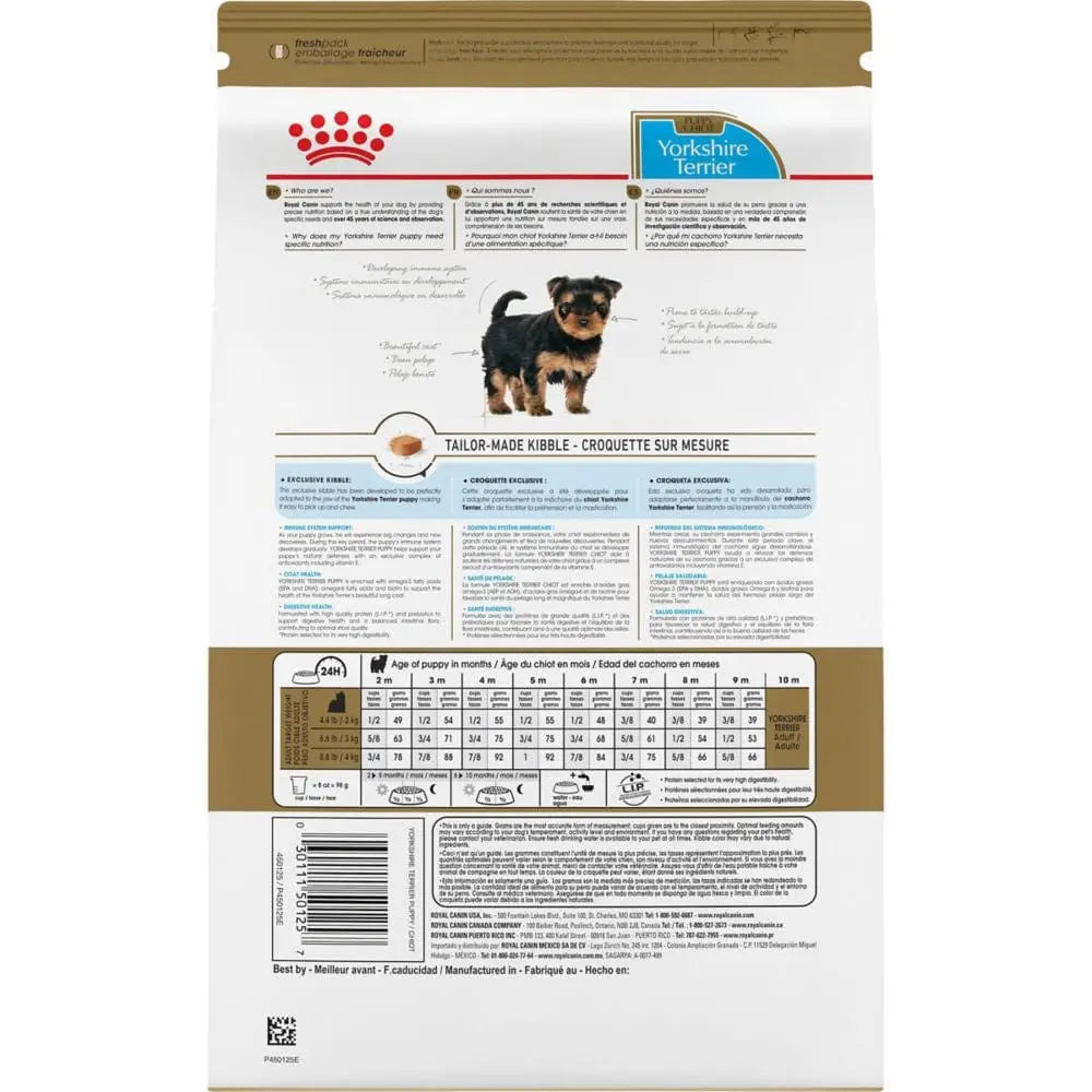 Royal Canin Yorkshire Terrier Puppy dry dog food is tailor-made nutrition created just for your pure breed Yorkie puppy. This exclusive breed-specific diet is uniquely formulated for your Yorkshire Terrier puppy with specific nutrients to help them thrive. The unique kibble shape and texture are specially designed for your Yorkshire Terrier’s short muzzle and level bite, making it easy for them to pick up and chew. An exclusive mix of antioxidants and vitamin E supports their developing immune system and keeps their body growing strong. Optimal levels of omega-3 and omega-6 fatty acids, plus biotin, help give your Yorkshire Terrier’s growing long coat a beautiful shine. And high-quality proteins and prebiotics support healthy digestion to help promote optimal stool quality and reduce unpleasant stool odors. Once your Yorkshire Terrier puppy is over 10 months old, transition them to Royal Canin Yorkshire Terrier Adult dog food for precise nutrition into their adult years.