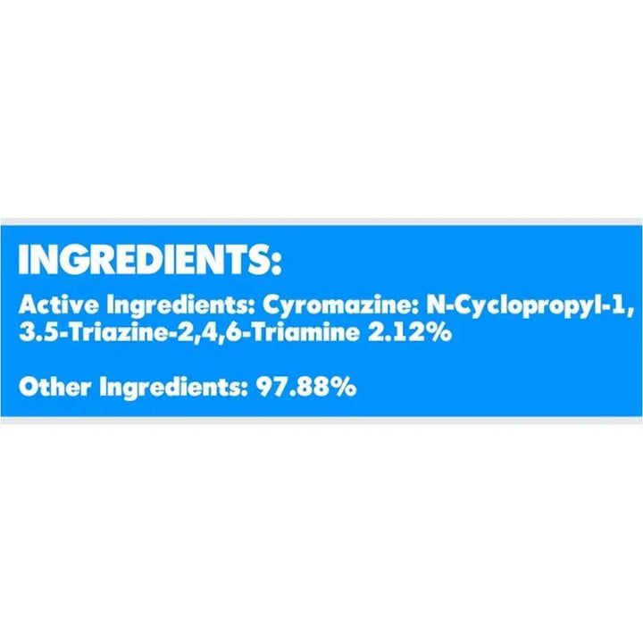 Active Ingredients: Cyromazine: N-Cyclopropyl-1, 3.5-Triazine-2,4,6-Triamine 2.12%