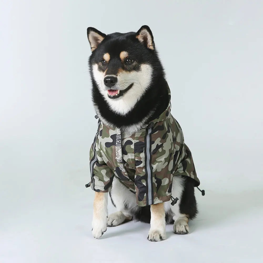 Dog Raincoat Windbreaker Stylish Dog Rain Jacket, Water Resistant with Reflective Stripes, Hooded Raincoat for Dogs Cat Puppy Small Medium Large