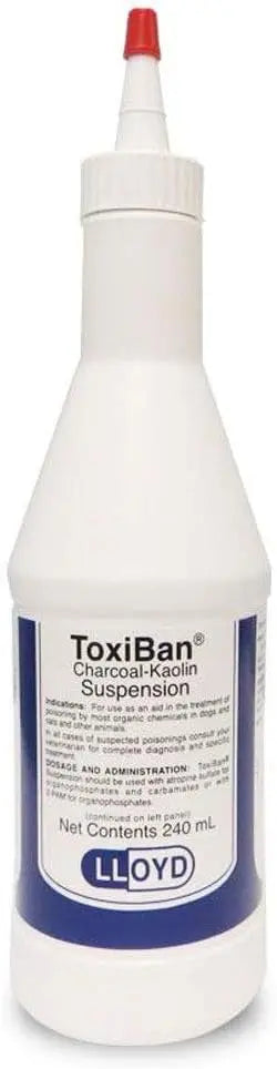 TOXIBAN Suspension is specifically designed as an adsorbent for orally ingested toxicants. To ensure maximum effectiveness, use with either Atropine Sulfate for organophosphates and carbamates, or with 2-PAM for organophosphates. It has been scientifically proven to effectively adsorb a wide range of substances including alkaloids (strychnine), organochlorine, organophosphate and carbamate insecticides, herbicides, rodenticides, parasiticides, depressants, and analgesics. Additionally, it can be used to treat ethylene glycol (antifreeze) poisoning, but a test must be administered beforehand to avoid false results.
