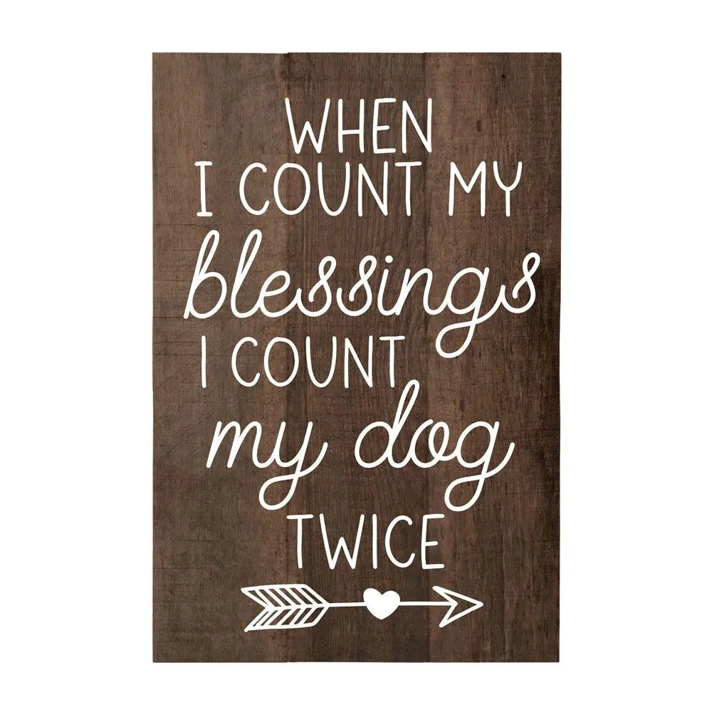When I count my blessings, I count my dog twice, 16" x 10.75" x .5", Rustic Pallets Wall Art, Funny Quotes and Sayings, Decor and Gifts for Dog Walker, Pet Sitter, Groomer, Doggie Daycare, Breeders, Pet Stores,
